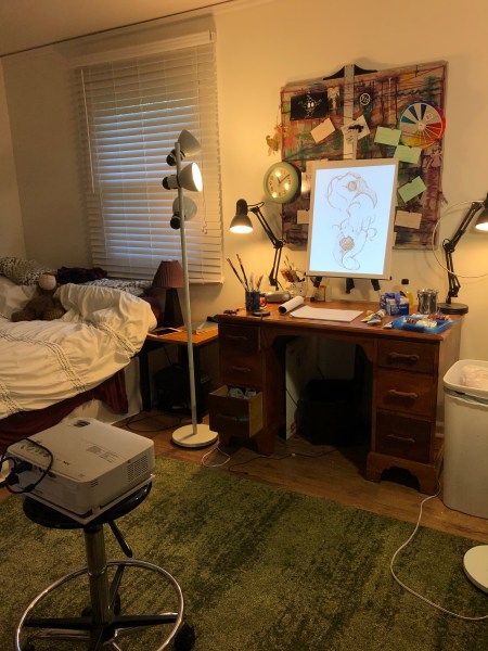He says “I am going to tell my parents we are together.” He is pinning a business card to a corkboard. I pause. I feel something – glad he wants to make me legitimate in his life. Legitimate is the word…