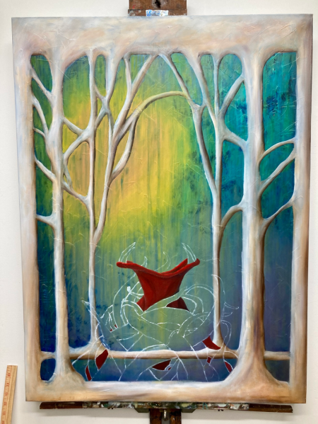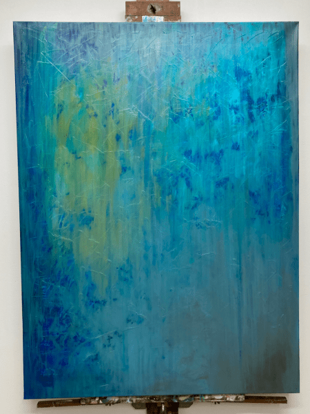 Shortly thereafter I decided I wanted to do another large piece, something with layers of color placed with a palette knife and my fingers and the wild abandon that comes from owning gloves and using them to paint, so there’s no mess to fret over.