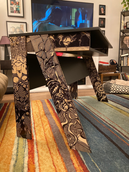 My eldest daughter needed a new desk and I found this for a steal. BUT, she doesn’t love the light wood – the contrast is too harsh for her. So I volunteered to doodle the legs with sharpie … it seemed a solid endeavor and man was I right!