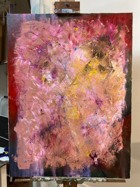 Then I went back through with a gloved hand and worked the wet paint (which did reactivate some of the under layer … as rubbing will do until It’s fully cured). I like this pillowy dream effect.