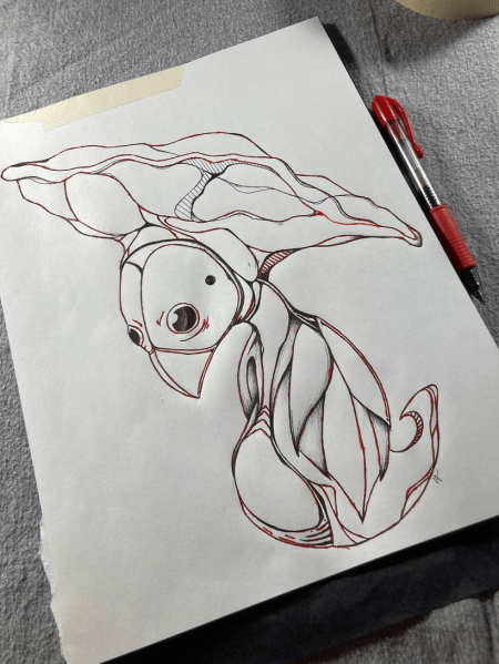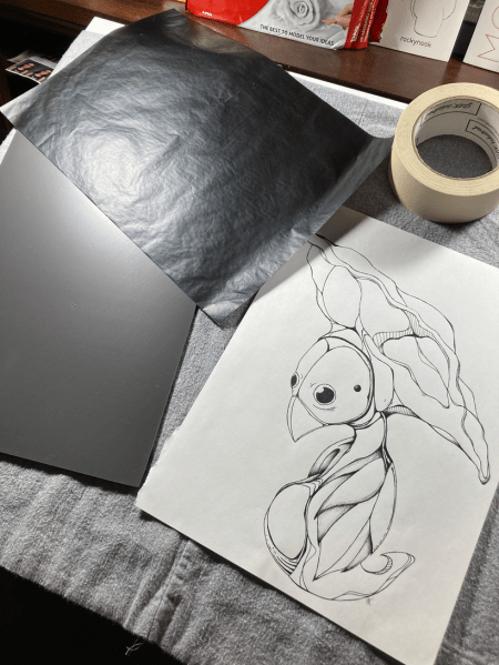 Now, I do believe there are ways to do this with freshly printed pages and an iron, but I don’t own an iron and that seems like such a hassle. In case it’s not obvious, the original piece is now pretty well ruined so if you are doing art that you want to preserve I’d recommend printing off a template you can throw away after.