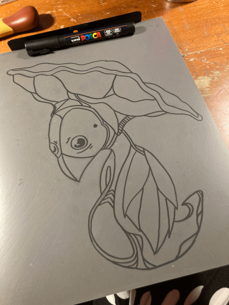 I started out just tracing the lines, my thought is to keep the black lines black and carve around them for this first go. This gives me lots and lots of actual carving to do, and experimenting and experiencing is the goal.