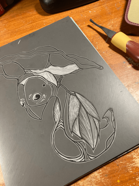 A few months ago I’d declared I wanted to try some new things. I’ve dabbled at focusing on anatomy and have looked at some air dry clay … but I really wanted to carve. With the support of my amazing Patrons here (thank you!) I was able to invest in all the things for Lino Printing. And now I begin.