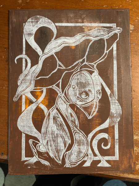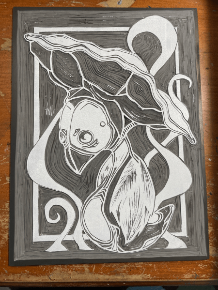 So, I was (and am) very pleased with how the first linocut prints went but I gotta tell you… I don’t love the ink I have. It seems to be the standard that most everyone recommends but it’s just a pile of yuk to work with. Dries quickly, textured and smudges even after dry until I get about four layers of fixative on them. This is not my style.