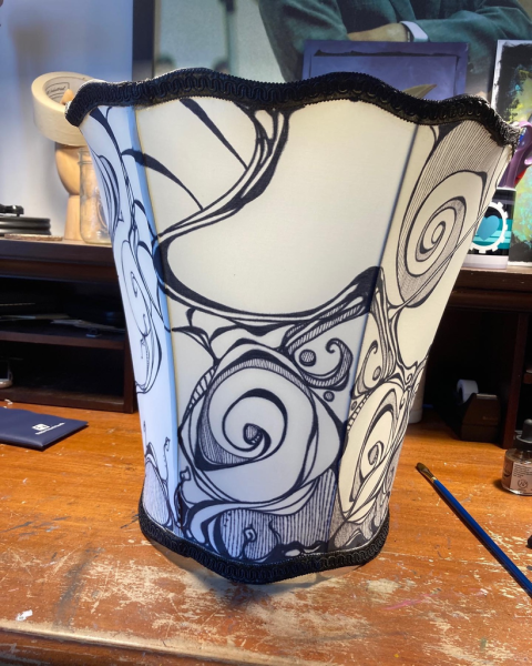 2. Cloth lampshades are delicate and troublesome, particularly older ones that might have some grease stains on them which will inhibit the absorption of the ink (I had to google how to spell that, I would have sworn there was a b in there).